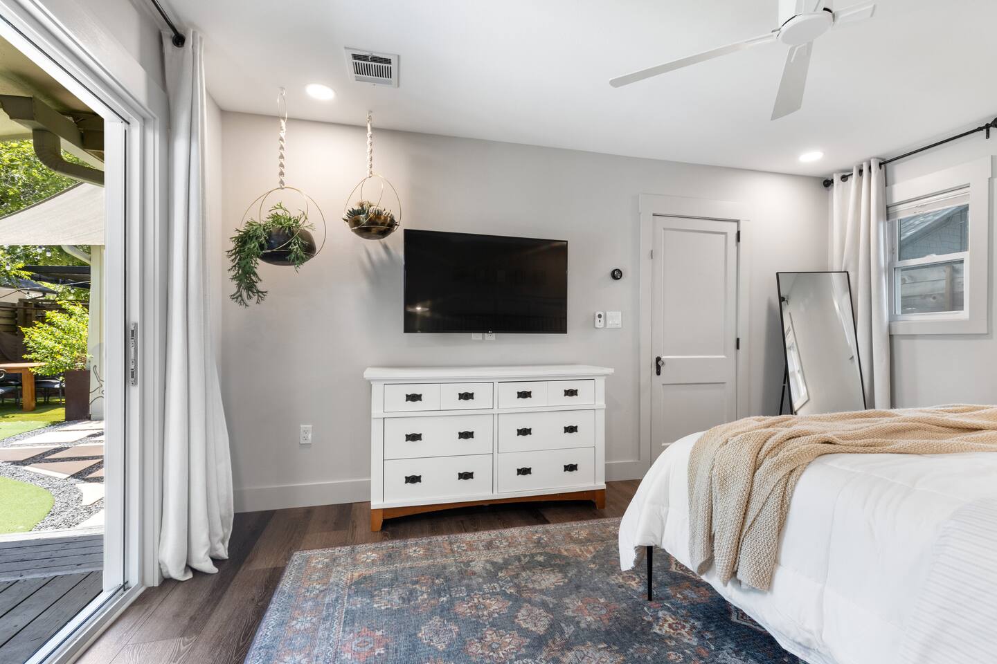 Unwind and explore from this newly renovated home, perfectly positioned minutes from Austin’s hottest spots. Nestled in a highly walkable area, you’re just steps away from South Lamar’s top dining destinations like Loro and Uchi. Enjoy the best of Austin with Barton Springs, Zilker Park, South Congress, and downtown all within easy reach. This prime location is ideal for attending popular events such as ACL, SXSW, and UT Football games. The home features a stylish kitchen which boasts a gas oven and large island. Amenities include a Keurig coffee maker, toaster, microwave, wine fridge, and dishwasher. For those working remotely, you will find a dedicated desk area. Step outside to a spacious backyard oasis featuring a dining area, cozy sofa, and hammocks for relaxation. Enjoy fun amenities like a putting green, corn-hole, and a large fan for added comfort during warm evenings. Travel light and enjoy the convenience of a full washer and dryer on property. Off-street parking for up to four cars, including a Tesla EV charger. Bringing kids? We are a walk away from Little Zilker Park with a track, playscape and field to get the wiggles out. Immerse yourself in the heart of Austin and enjoy seamless access to top attractions, dining, and events! The Area: Walkable: ☼Loro: .2 mi. ☼Taco Deli: .3mi ☼Uncle Nicky's: .2 mi. ☼Bouldin Acres: .3 mi. ☼Dear Austin Coffee Bar: .4 mi. ☼Proud Mary: .3 mi. ☼Barton Springs: 1 mi. ☼Zilker Park: 1.5 mi. ☼South Congress: 1.4 mi. ☼Alamo Drafthouse: .9 mi. Other Points of Interest: ☼ACL Live: 2.6 mi. ☼UT Football Stadium: 4.9 mi. ☼Moody Center: 4.4 mi.